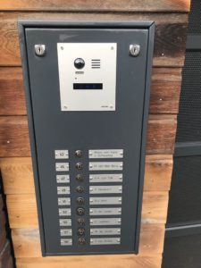In het buiten bellentableau is de bestaande Urmet camera spreek/luister module boven de beldrukkers gedemonteerd en op deze plaats is een Evercom deurbelpaneel camera spreek/luister module gemonteerd. Door het op maat gemaakte paneel, is het Evercom deurbelpaneel op mooie wijze gemonteerd en hoefde het huidige bellentableau niet geheel vervangen te worden. Een kostenbesparing voor de V.v.E. De bestaande beldrukkers zijn vervangen en aangesloten op het nieuwe systeem.